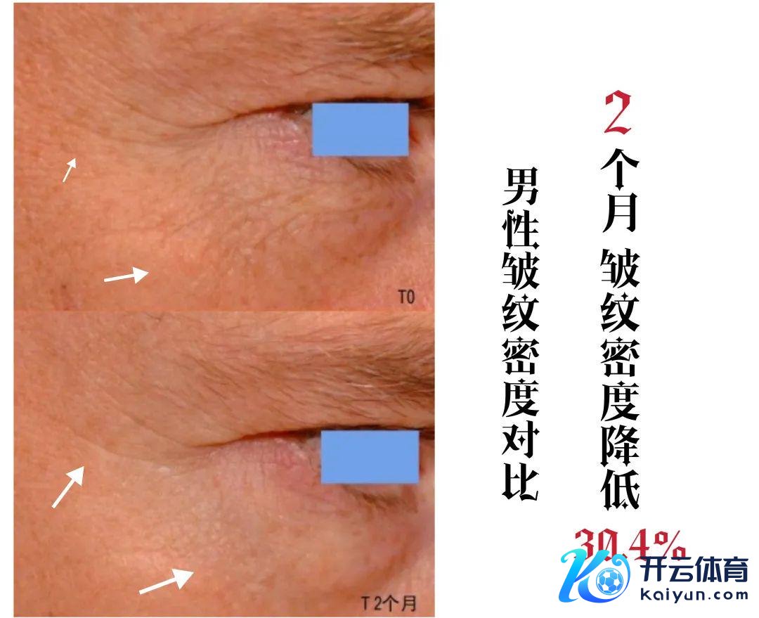 39位男性志愿者,平均年龄:54.5岁。相似2个月,皱纹密度禁止30.4%。