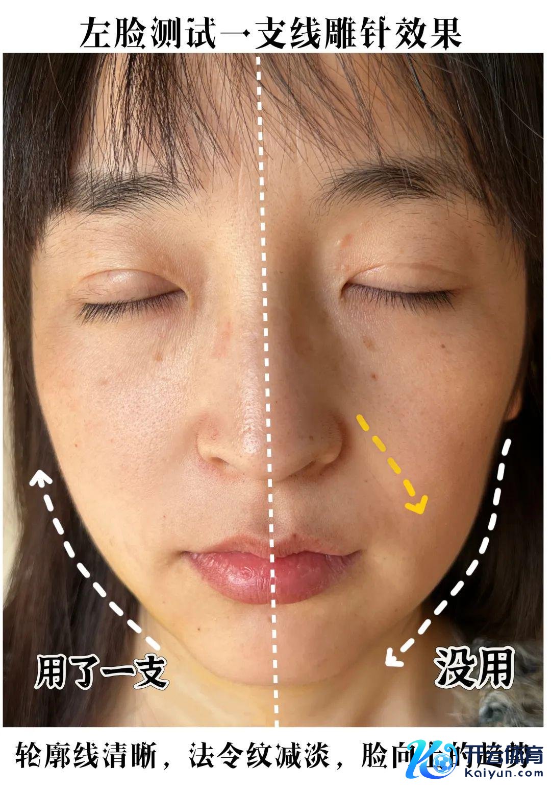 给你们看我用了左半边脸测试了,一支下来左脸光显比右脸提上去,空洞线也顺滑,好像被吊上去,双方脸不一样,用出了工伤。