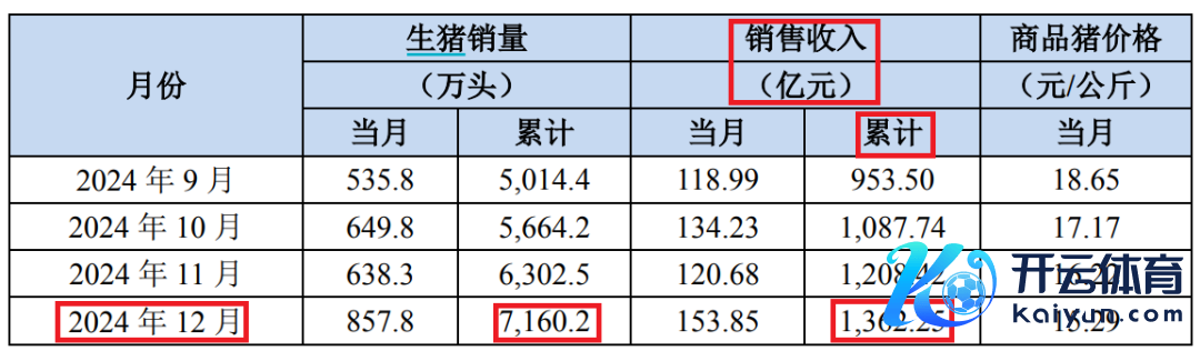 2024 年,牧原股份共销售生猪7160.2万头,比2023年增多近800万头;其中商品猪6547.7万头、仔猪565.9万头、种猪46.5万头。界限2024年12月底,公司能繁母猪存栏为351.2万头。