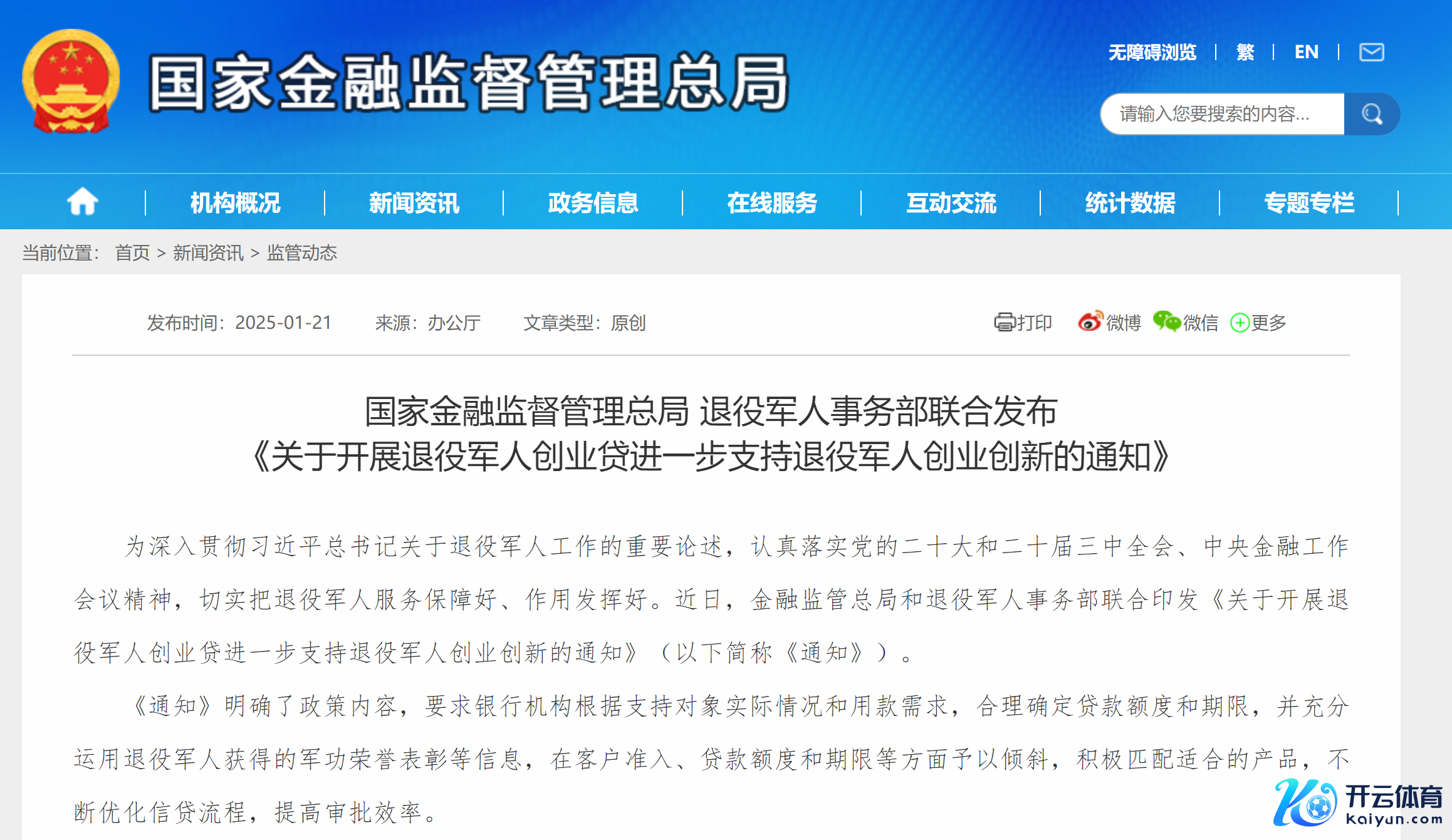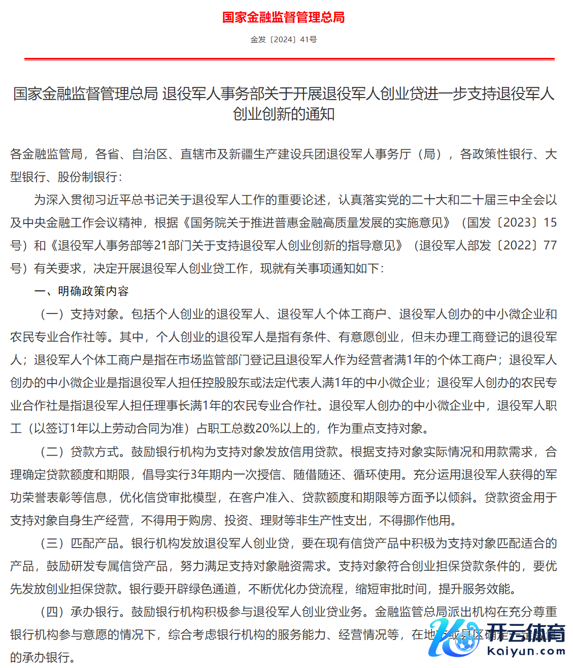 1月22日,记者从国度金融监督管制总局官网获悉,近日,金融监管总局和退役军东谈主事务部辘集印发《对于开展退役军东谈主创业贷进一步复旧退役军东谈主创业转变的见知》(简称《见知》)。