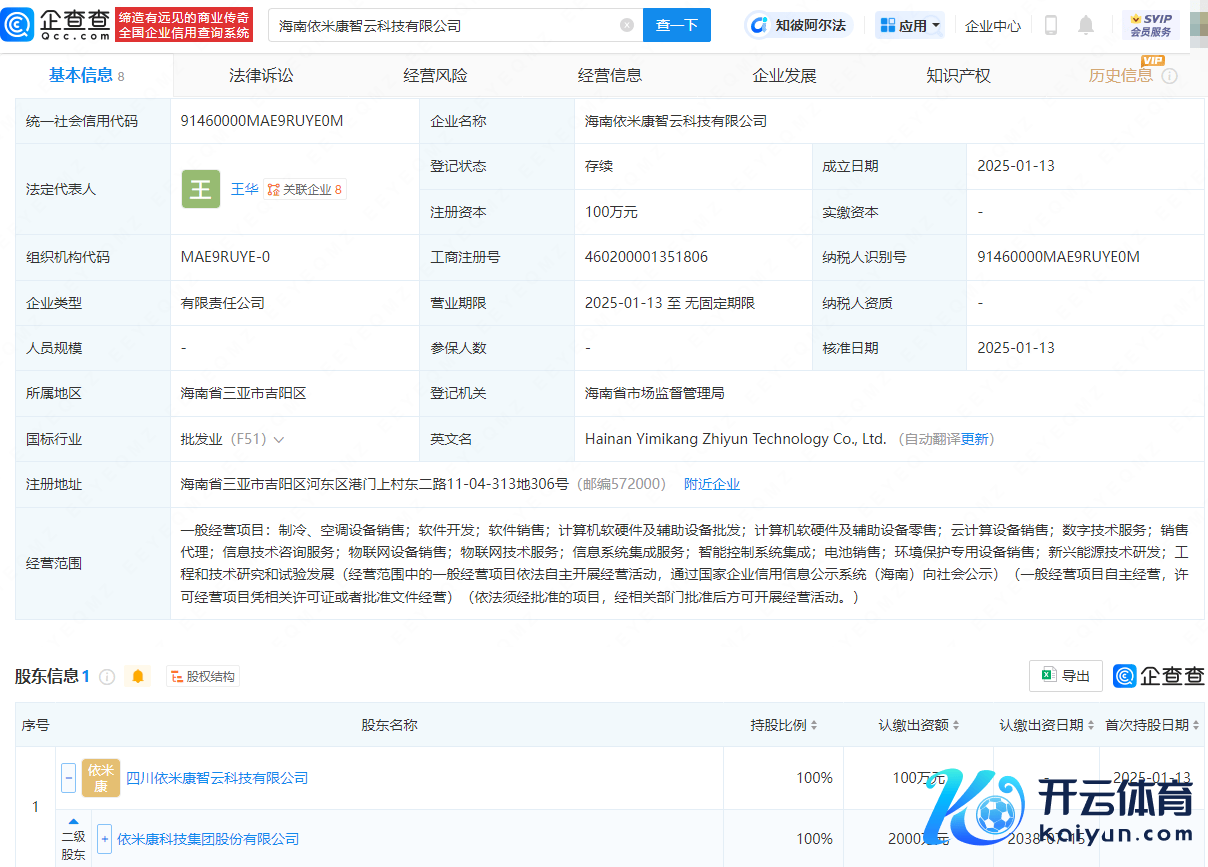 企查查APP显现,近日kaiyun,海南依米康智云科技有限公司设立,法定代表东说念主为王华,注册老本为100万元,议论范围包含:云规画开发销售;数字技巧工作;销售代理;信息技巧盘问工作;物联网开发销售;物联网技巧工作;智能截至系统集成;电板销售等。企查查股权穿透显现,该公司由依米康(300249)曲折全资抓股。