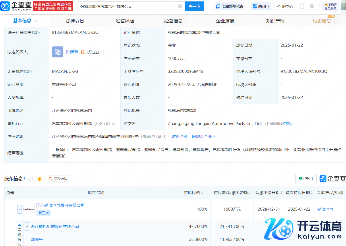 企查查APP显现,近日,张家港朗信汽车部件有限公司蛊惑,法定代表东谈主为陆耀磊,注册本钱为1000万元,谋略限制包含:汽车零部件及配件制造;塑料成品制造;塑料成品销售;模具制造;模具销售;汽车零部件研发。企查查股权穿透显现,该公司由江苏朗信电气股份有限公司全资抓股,后者由银轮股份(002126)等共同抓股。