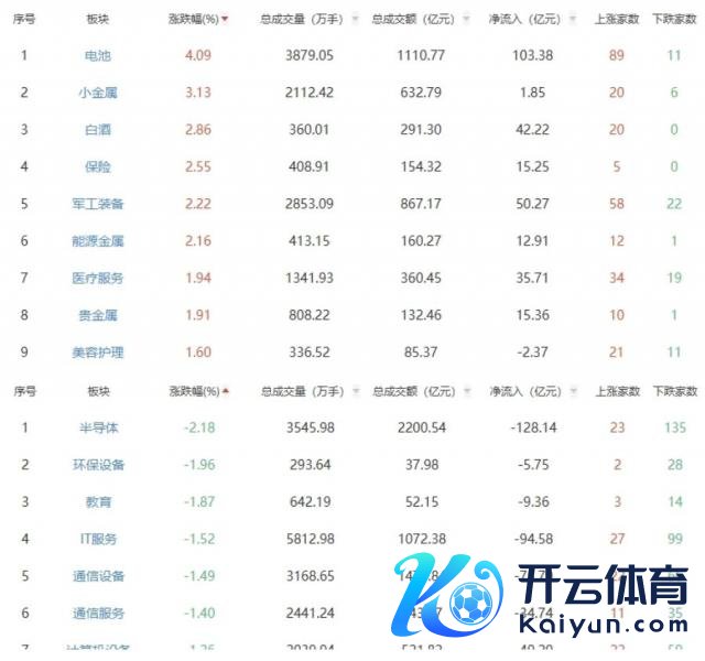板块方面,电板、小金属、白酒等板块涨幅居前,半导体、环保建造、老师等板块跌幅居前。