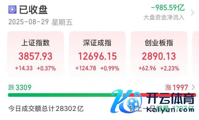 8 月 29 日,A 股三大指数集体高涨,扫尾收盘,上证指数涨 0.37%,深证成指涨 0.99%,创业板指涨 2.23%;北证 50 涨 1.28%。